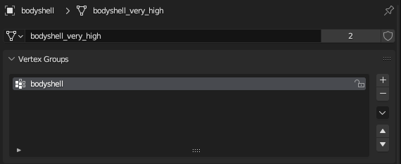 Notice how each object represents a separable part of the vehicle. Since it's split by vertex group, each object will only have one vertex group.