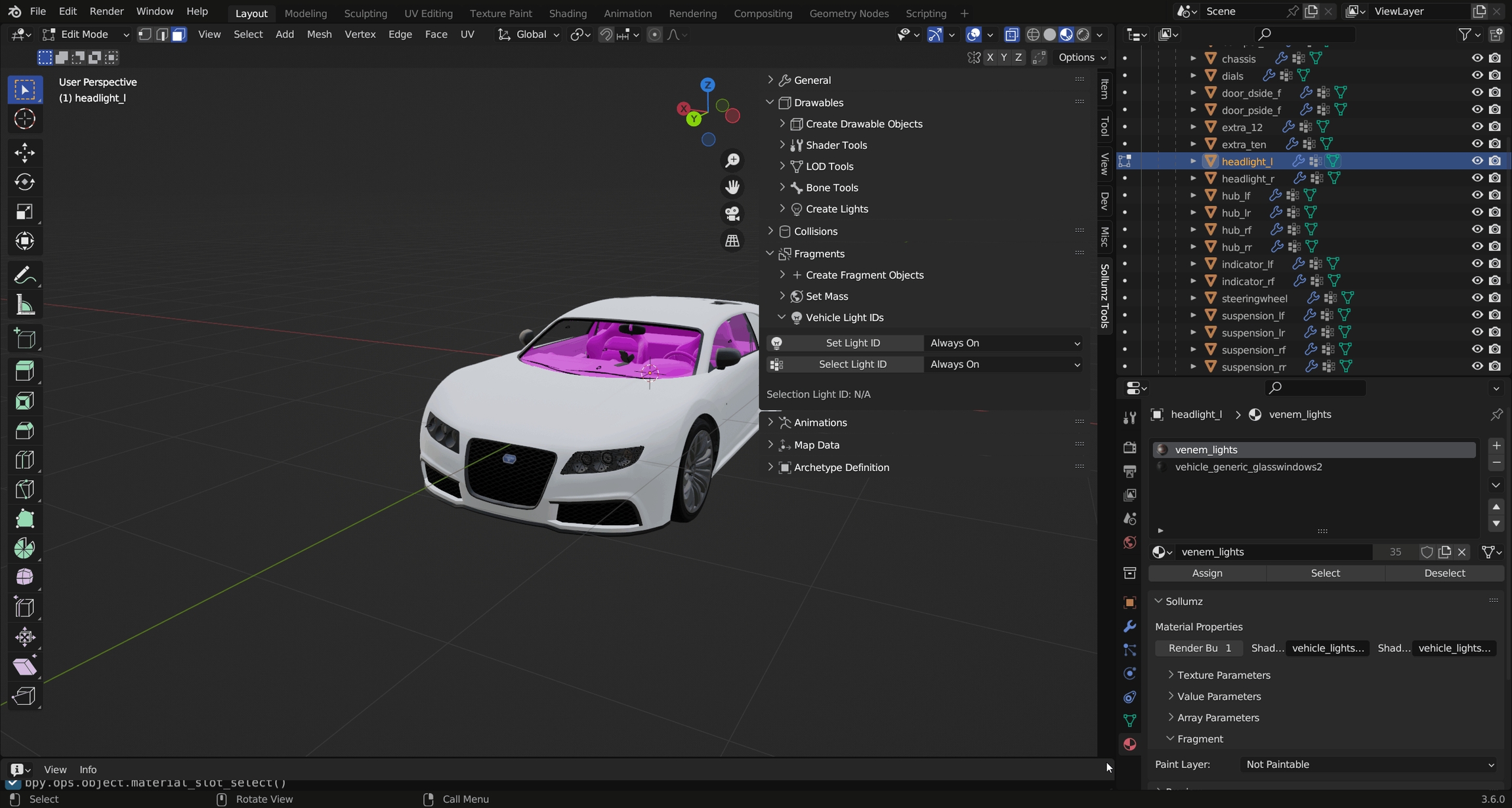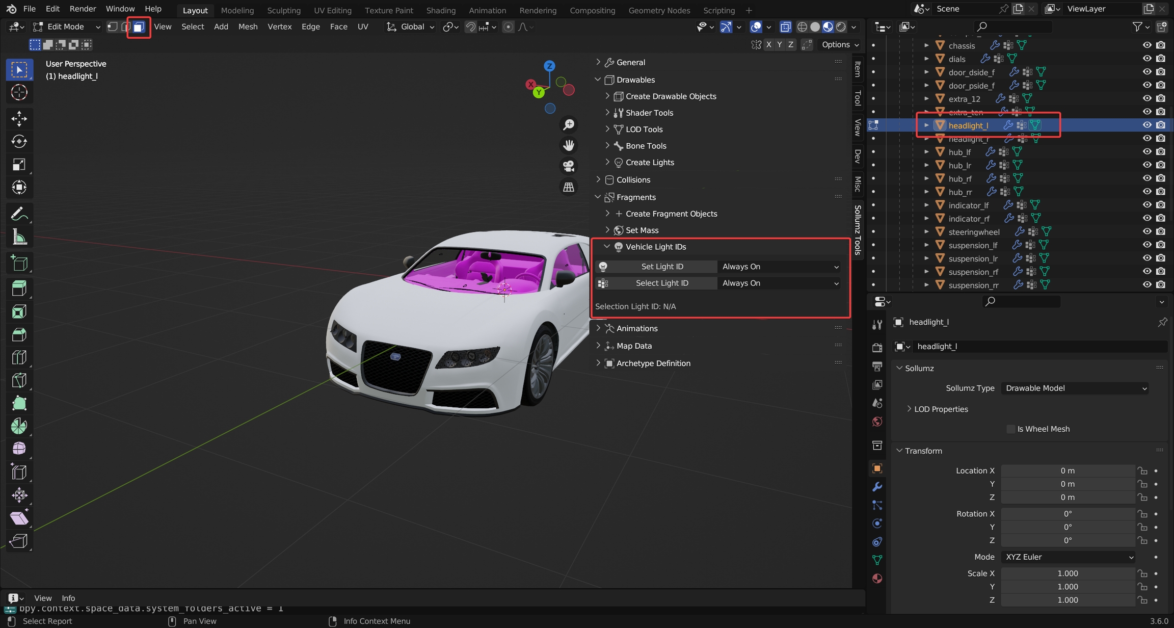 mode and navigate to the Sollumz Tools > Fragment > Vehicle Light IDs