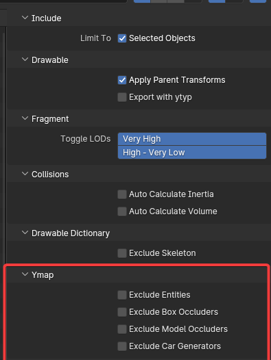 There is a handful of export options related to ymap in the export window, keep these in mind in case you are running into any issues.