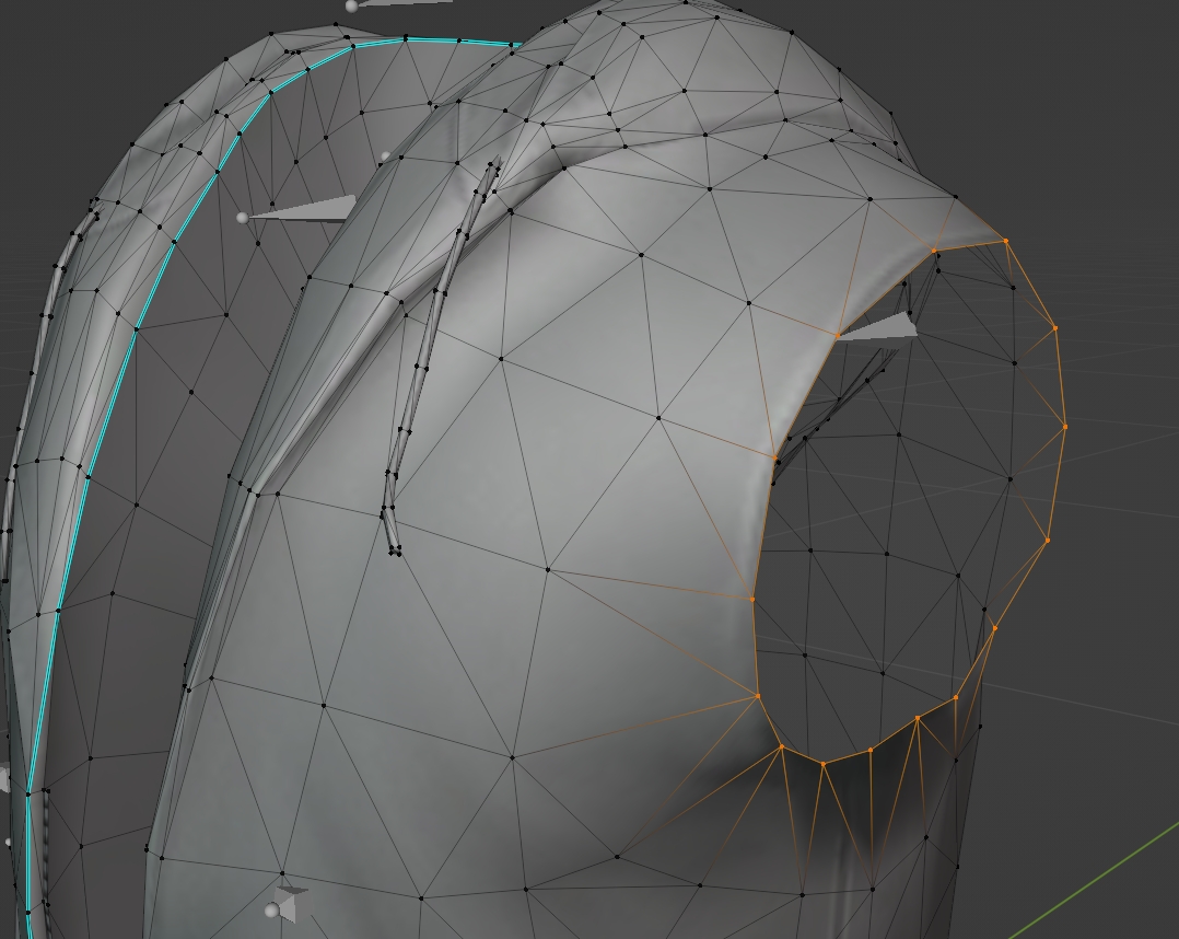 The reason we want to fill in the holes is because GTA uses back-face culling. What this means is that the faces on the model do not have both a viewable "front" and "back". Instead, the front-facing side is visible and the back is invisible. We can see this in action in blender by going back up to the viewport shading options and turning it on.
