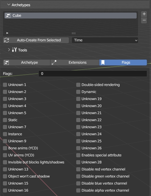 Archetype flags are used to define certain properties of the archetype, like its vertex colours and its physics and how it renders