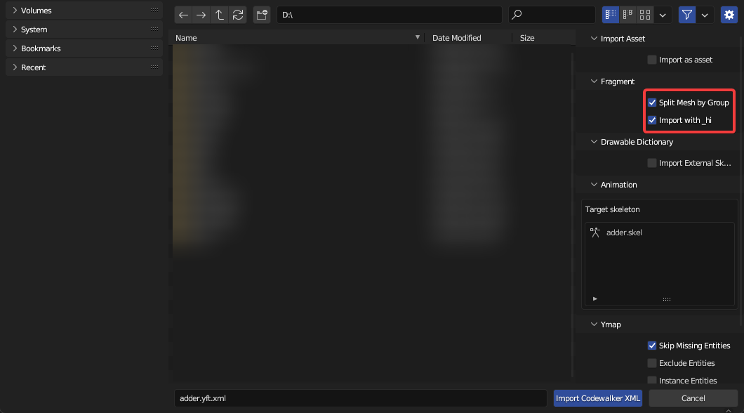 To import Very High LODs, first enable the Import with _hi option in the import settings panel, and ensure the _hi YFT is in the same directory as the non-hi YFT. Then, select the non-hi YFT and import.