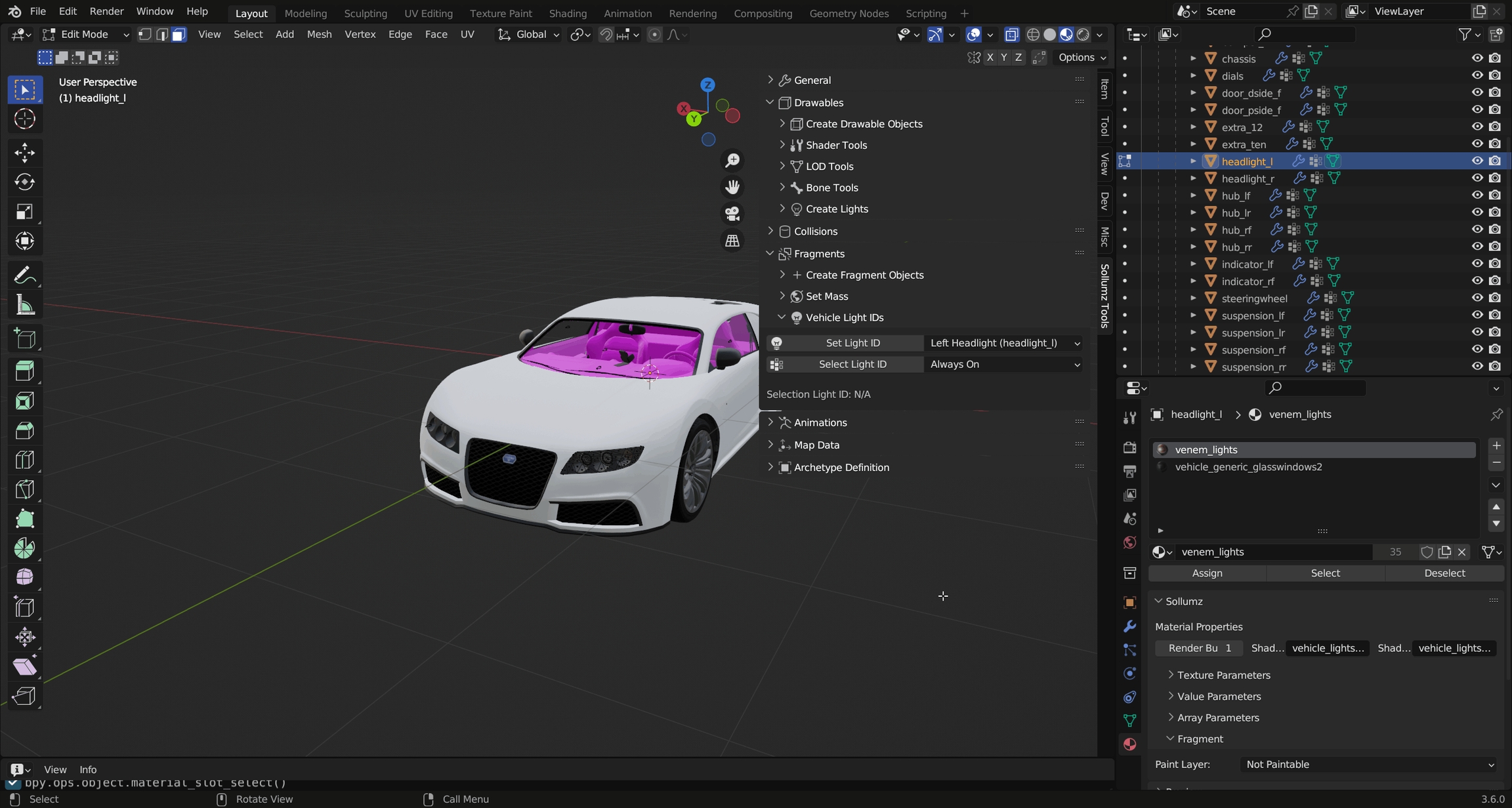 mode and navigate to the Sollumz Tools > Fragment > Vehicle Light IDs