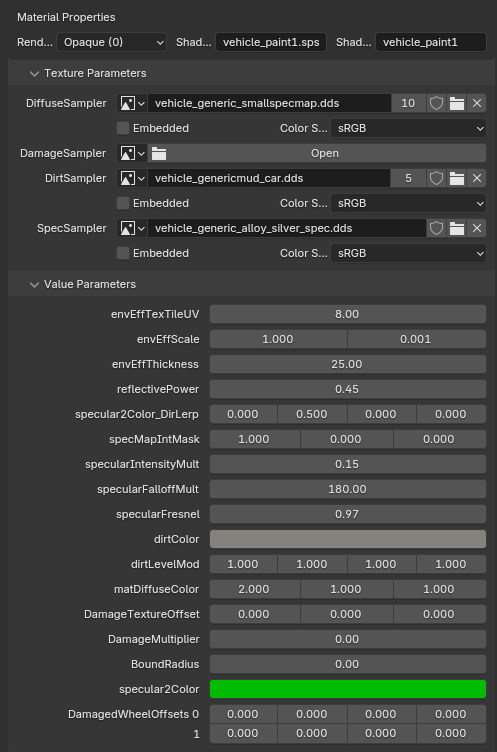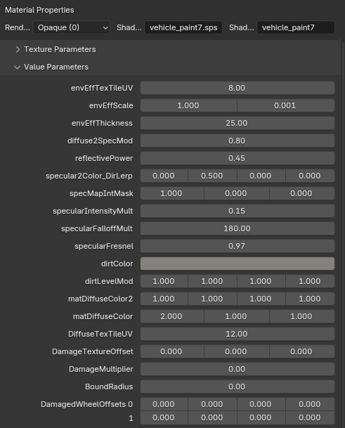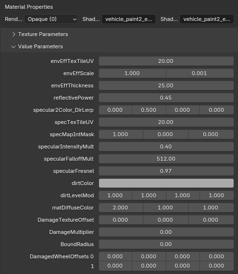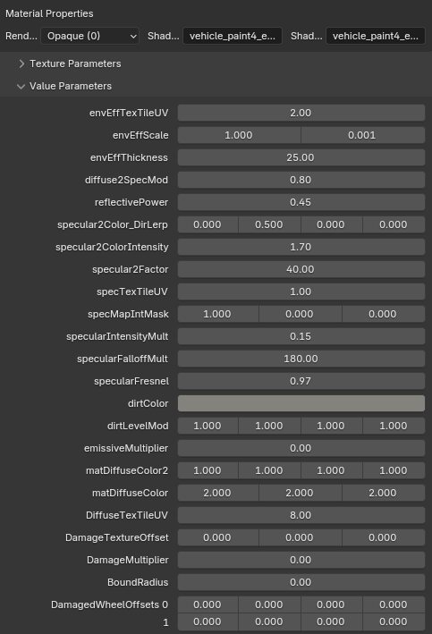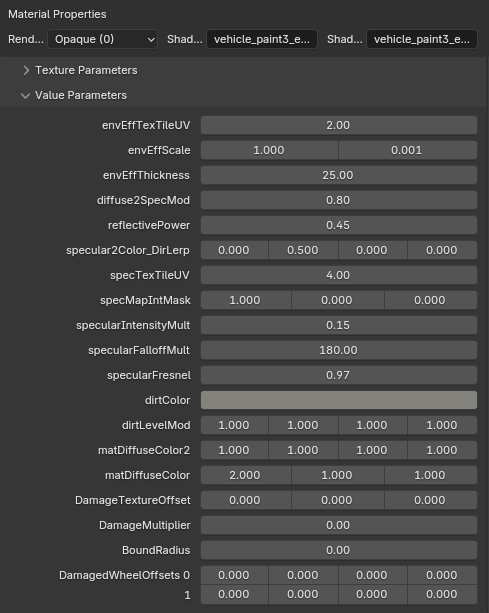 <figure><img src="https://content.gitbook.com/content/jr2eXUuJXO9goMxBK9Tt/blobs/RiOeZLzLI70BBScMWRLP/paint2_enveff.png" alt=""><figcaption><p>Example of converted material for vehicle_paint2_enveff</p></figcaption></figure>