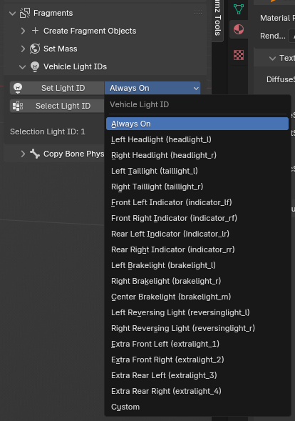 Lights ID values for different type of vehicle lights, available in Fragments / Vehicle Light IDs