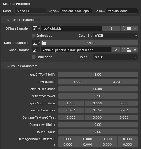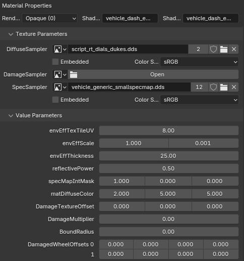 <figure><img src="https://content.gitbook.com/content/jr2eXUuJXO9goMxBK9Tt/blobs/b7KrLSrvVStCyrBB0S5W/obraz.png" alt=""><figcaption><p>Example of converted material for vehicle_dash_emissive_opaque</p></figcaption></figure>