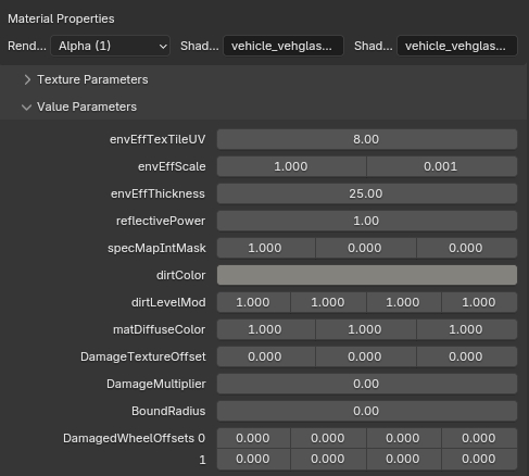In this page you can find all vehicle shaders used on vehicles and their technical usage