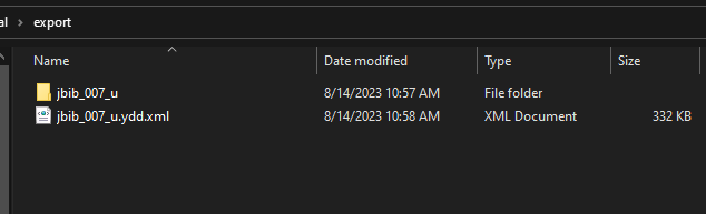* It's best to create an 'export' folder so that you are not overwriting the original. That way if you mess up, you don't have to go grab the ydd xml all over again.&#x20;