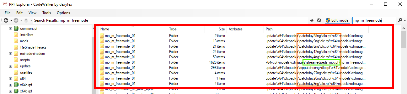 <figure><img src="https://content.gitbook.com/content/jr2eXUuJXO9goMxBK9Tt/blobs/yI3PgPyJ4kGH60E6f0bq/image.png" alt=""><figcaption><p>an image of codewalker showing the folder where mp m/f yfts can be found</p></figcaption></figure>