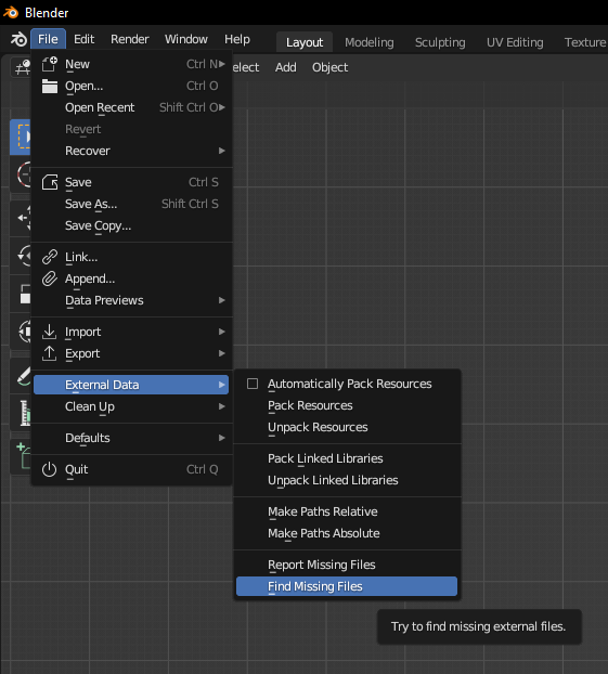 * Top-left, go to File ► External Data ► Find Missing Files