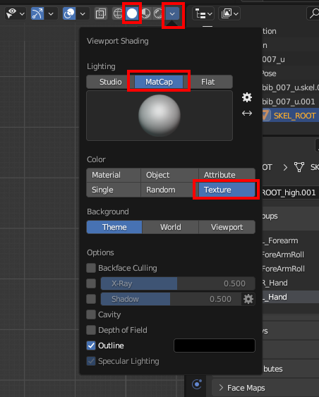 Personally, I like to change the 'color' to Texture and 'lighting' to MatCap, but you can play around in this menu and see what works for you.