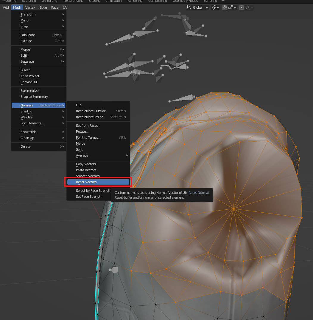 For now I'm just going to reset them to clear up this issue! **With my geometry selected** go to Mesh ► Normals ► Reset Vectors
