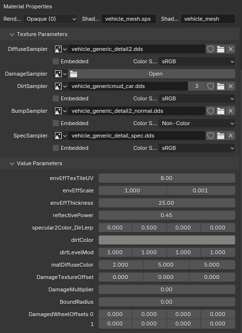 In this page you can find all vehicle shaders used on vehicles and their technical usage