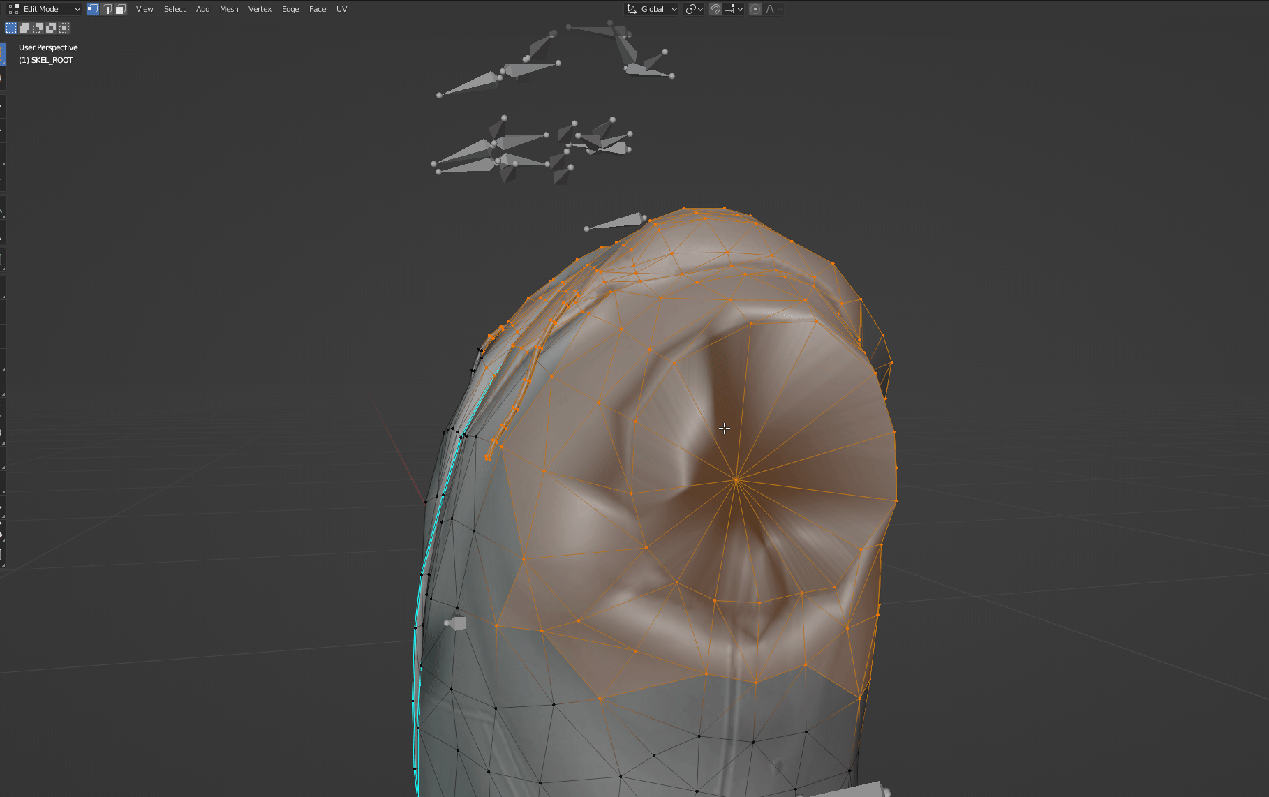 Since this is the edge of the shirt, I'd also like to set some sharp edges along the same loop we just filled in. Sharp edges add a more "crisp" line in geometry that is clearly visible in-game. When you use them properly, they can add a little extra emphasis to your model quality. There's no rule of when or when not to use sharp edges, it's up to you to follow the lines of clothing and determine where they would make sense.&#x20;