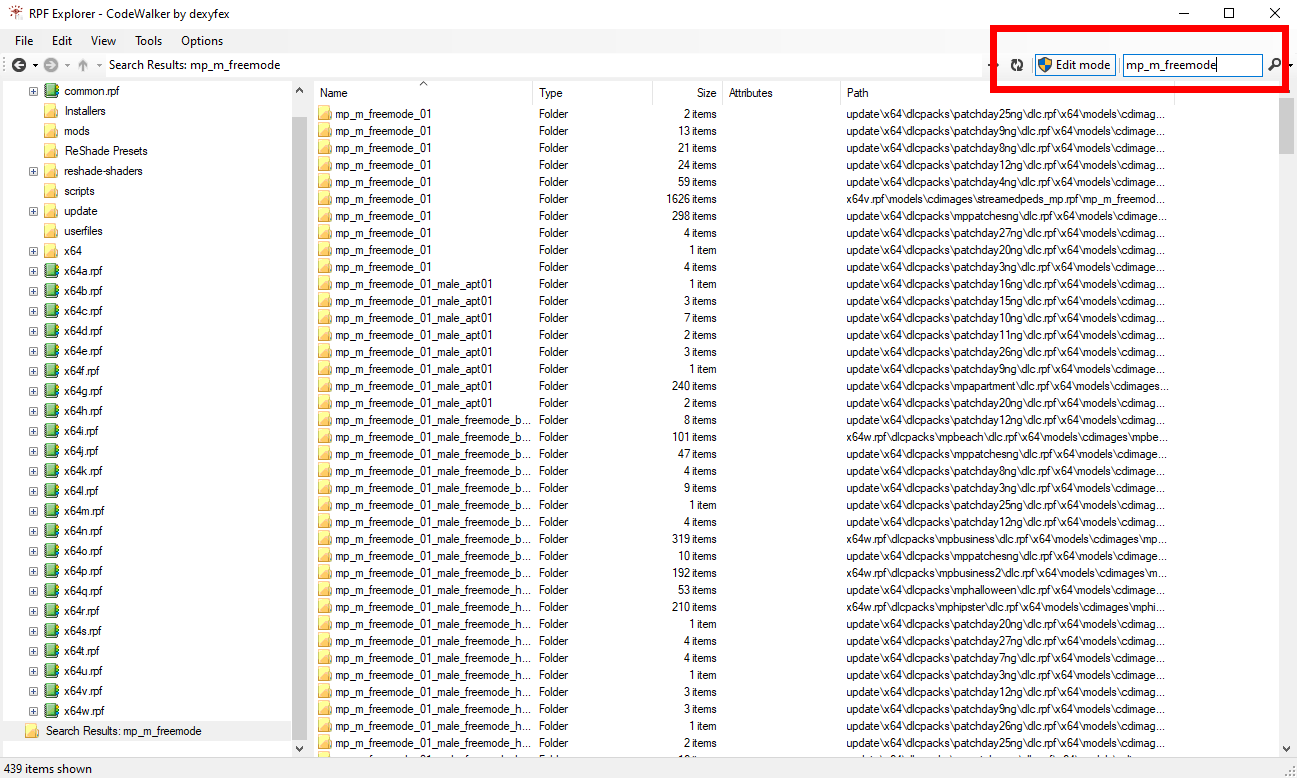 <figure><img src="https://content.gitbook.com/content/ehtaz4TEffW4ndJvLWLm/blobs/8dJ4hL4oP3LAcN3hpgFH/image.png" alt=""><figcaption><p>an image of codewalker showing the folder where mp m/f yfts can be found</p></figcaption></figure>