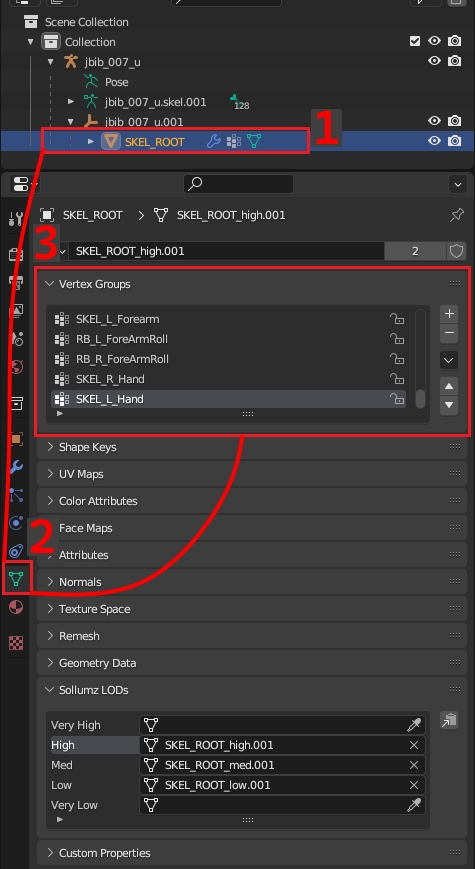Clothing has 3 LODs (level of detail): high, medium, and low. We also need to do the same thing for our medium and low LODs.