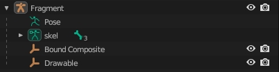 Drawables can be rigged using either vertex groups (skinning) or Child Of constraints. The top-level Drawable object must be an armature.